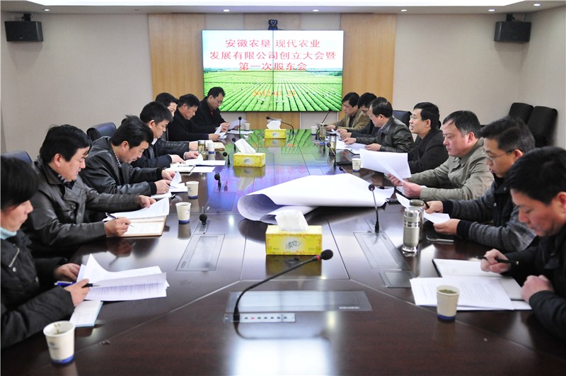 会议听取了公司筹建工作情况的汇报,讨论确定了各股东单位的出资方式及比例,审议通过了《公司章程》和《2012年经营计划及财务预算报告》,选举产生了公司董事会和监事会成员。新当选的公司董事长陈仁虎在会议总结时强调,现代农业发展有限公司是安徽农垦汇集各方相关资源和力量的重要成果,寄予了省农垦集团及所属各企业的期待,他号召公司全体成员同心协力,全力以赴做好公司初创时期的各项工作,为打造安徽农垦现代农业示范新窗口而努力奋斗。(陈劲松 杨涛)