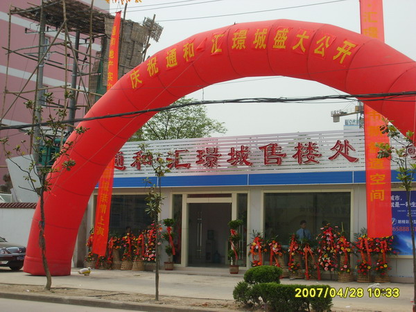 4月28日上午10时58分,通和·汇璟城售楼部在一片鞭炮声中正式开业。该楼盘是由通和公司控股的安徽国投实业公司开发的,位于合肥市史河路41号,开发总面积3万余平方米。一期的1.8万平方米工程建设顺利,已经获得市相关部门的预售证。目前正在火爆销售中。 图为开业时的情景。(项道宏)