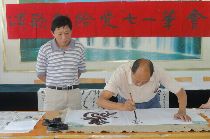 6月20日,农场党委组织开展了颂歌献给党“七一”笔会。农场书法爱好者们紧扣庆祝建党90周年主题挥毫泼墨,创作了“清正在德,廉洁在世”、“廉以立身,俭以养德 ”、“邦民国世,安强盛昌”等书法作品,热情讴歌了党的丰功伟绩。书法会展中,85岁高龄的老党员张作江激动万分,一进门便从口袋里掏出自己的党员证,兴致勃勃地谈起了伟大的党走过的光辉历程,并提笔写下了“一万年太久,只争朝夕”字幅。