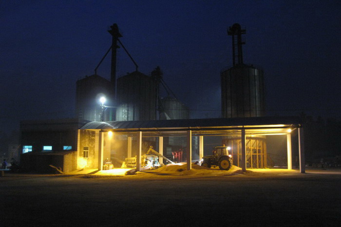 午收的主战场在第一农管区。农场密切关注麦情雨情,厉兵秣马,进入临战状态。6月8日上午接到当地气象部门预报,6月10日前后有“对流云团活动,可能发生较强降水”。雨情就是命令,当日下午五时许,指挥部正式发布第一农管区午收动员令,晚上7时前,所有管理人员迅速向种子公司晒场和地头集结,短短半小时内,第一批6台大型收割机下地作业,紧接着,8台、10台、15台……田野里机声隆隆,晒场上人声鼎沸,种子公司计量窗口更是一片忙碌的景象。蚊虫叮咬,尘土飞扬,瞌睡虫也在折腾着人的精力。大家克服疲劳,日夜轮转,与时间博弈,与天气抗争,没有人请假,没有人叫苦。10日晚乌云密布,不时洒下一阵一阵的雨点,一次次抢场、又一次次恢复机收作业,为应对变化的天气,该场从兄弟龙亢农场紧急调运7台收割机驰援,于10日夜开展“人机大会战”。每个人心里都在反复默念一个字:“抢!抢!抢!”