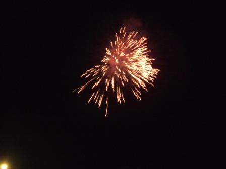 当日夜幕十分,龙亢农场上空的烟花次第开放。一组组高空礼花弹升夜空,空中各色的菊花、牡丹相继绽放;一排排烟火似宝石闪耀,如喷泉汹涌,人们在星光闪耀和声声报喜中展望未来。高空礼花品种繁多,造型奇异,有时似银河瀑布,飞流直下,引领风骚;有的如孔雀开屏,着华丽衣裳,激情舞蹈……一个个圆形的、桶形的、伞形的颜色展开,红的,黄的,蓝的,绿的,粉的,从天上次第落下,像是春天的花朵,争先恐后的开放,焰光四射遽然停在你眼前……附和着仰天而望、雀跃的肆意欢呼,把龙亢农场的元宵之夜变成了欢乐的海洋。