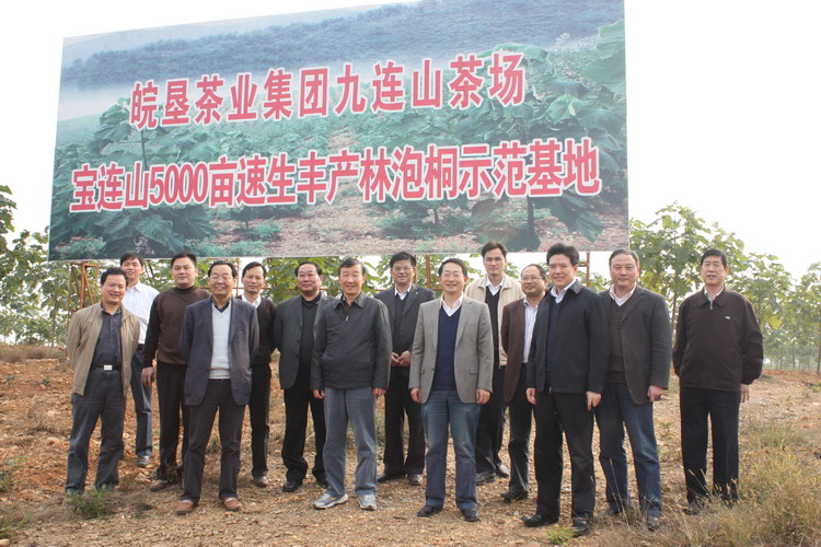 在宝连山速生丰产林基地,田文俊董事长、李卓民总经理一行现场听取了宗志贵场长对茶场泡桐基地已建成的一期和二期管理,建设中的三期进展,泡桐的生长周期、管理特点、成材效益等情况的汇报。接着,各位领导来到茶场廉租房建设工地,详细了解了该场廉租房建设规模、施工进度、计划完工时间等情况。最后,集团公司领导还察看了改善后的场区周边环境。