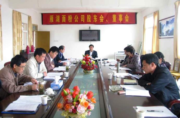股东会和董事会听取了雁湖面粉公司工作报告、2010年财务决算报告和2011年财务预算报告。工作报告回顾了2010年总体经营情况及2011年一季度生产经营情况,分析了存在的问题,提出了2011年度工作意见。会上,公司股东、董事就目前面临的经济形势和今年一季度经营态势进行了分析,各自提出了合理化建议和建设性意见。公司经营层就认真贯彻落实此次会议精神,完成2011年度经营目标进行了表态性发言。