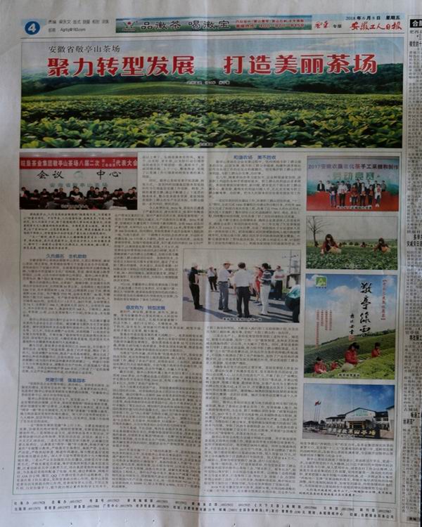 近日,安徽工人日报记者走进敬亭山茶场风采,专访了五一劳动奖章获得者谢腊梅,并专版报道了敬亭山茶场聚力转型发展、打造美丽茶场的最新成果。