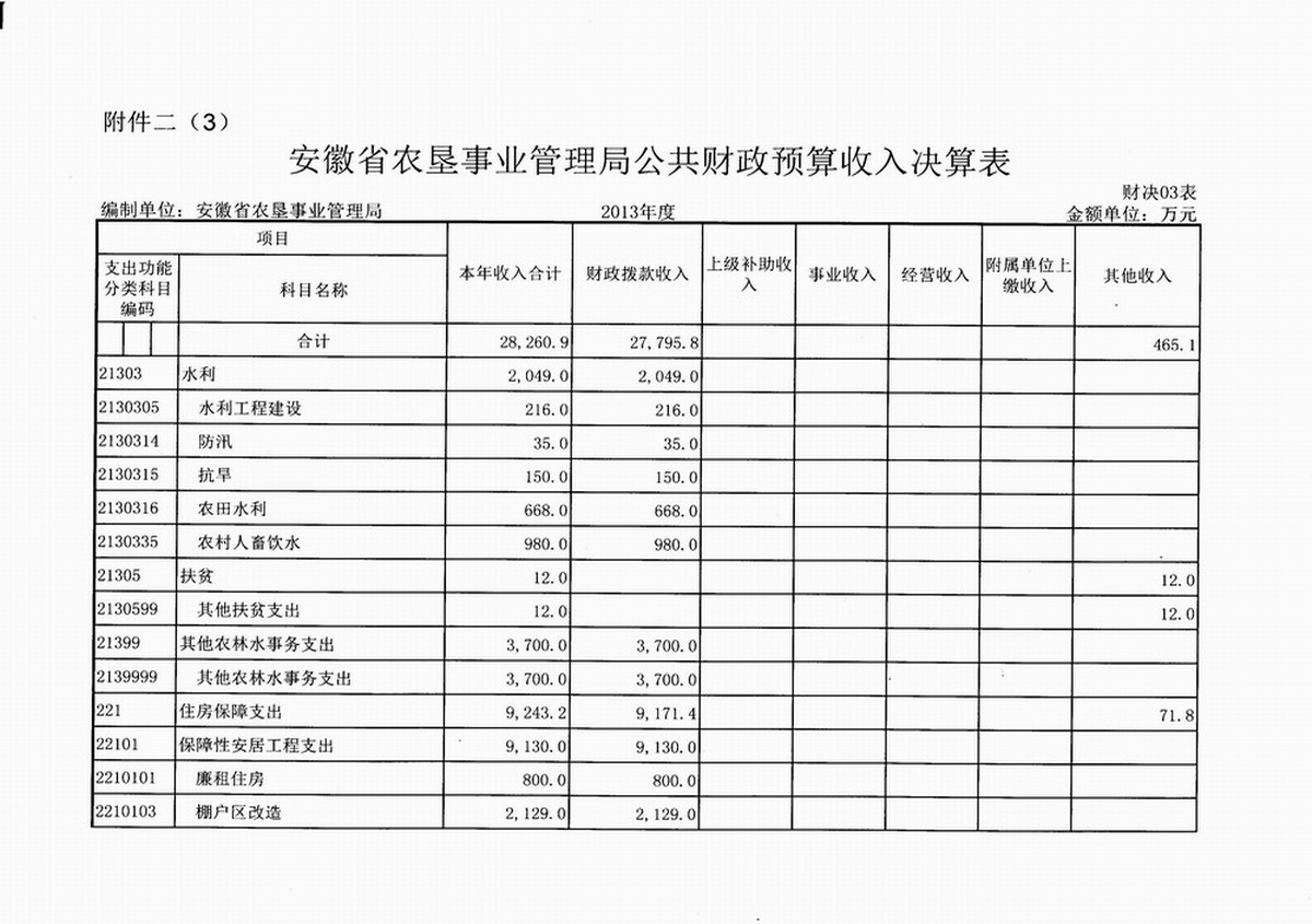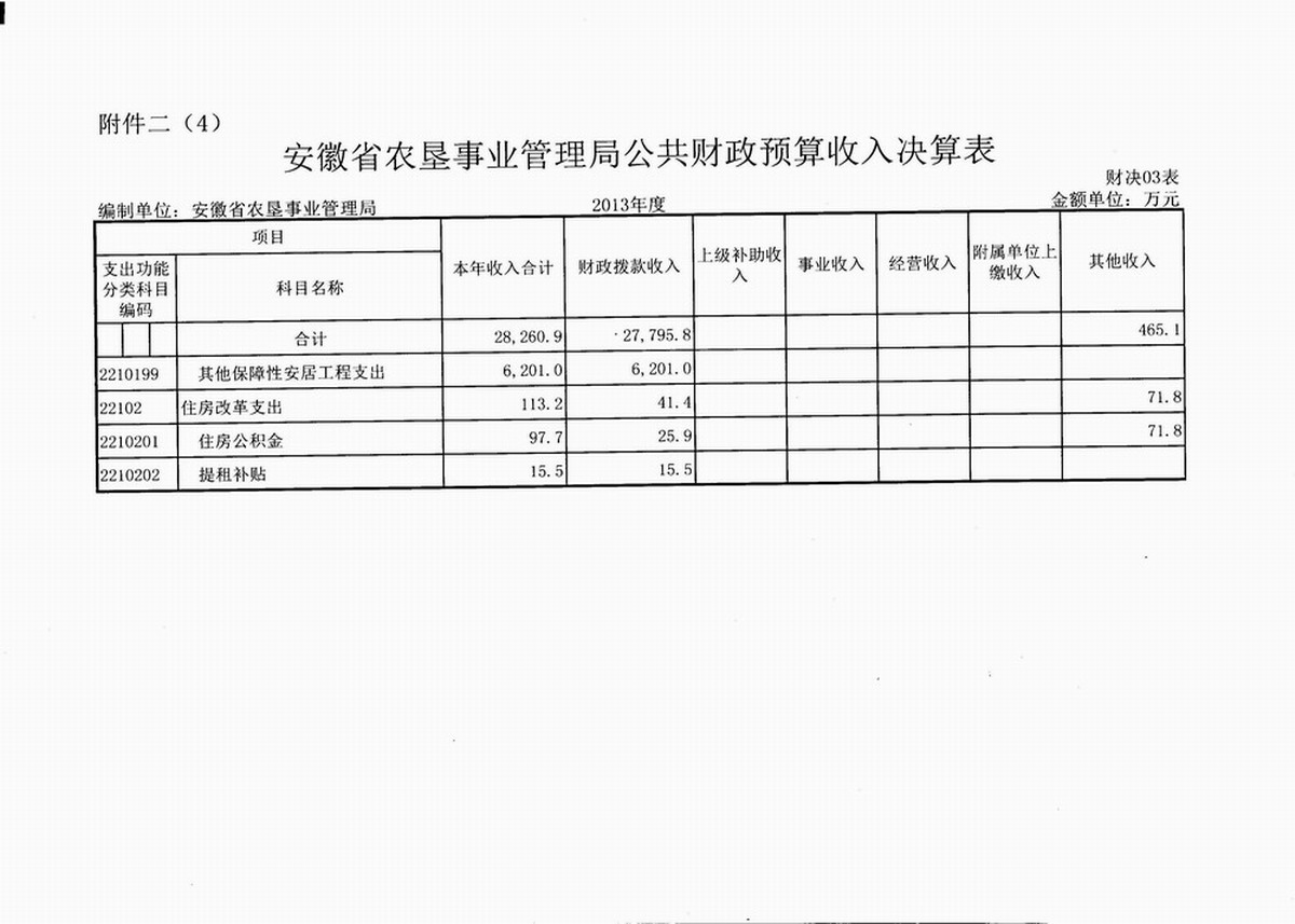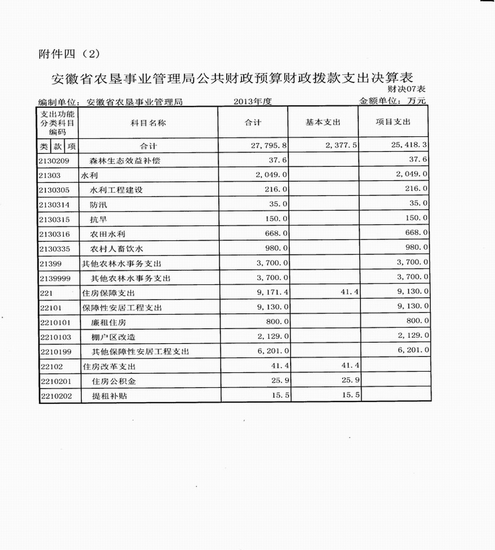 附件:1. 安徽省农垦事业管理局公共财政预算收支决算总表