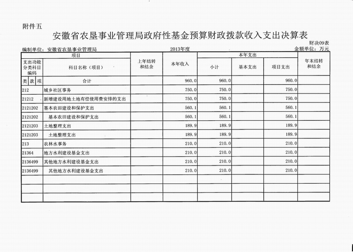 5. 安徽省农垦事业管理局政府性基金预算收支决算表