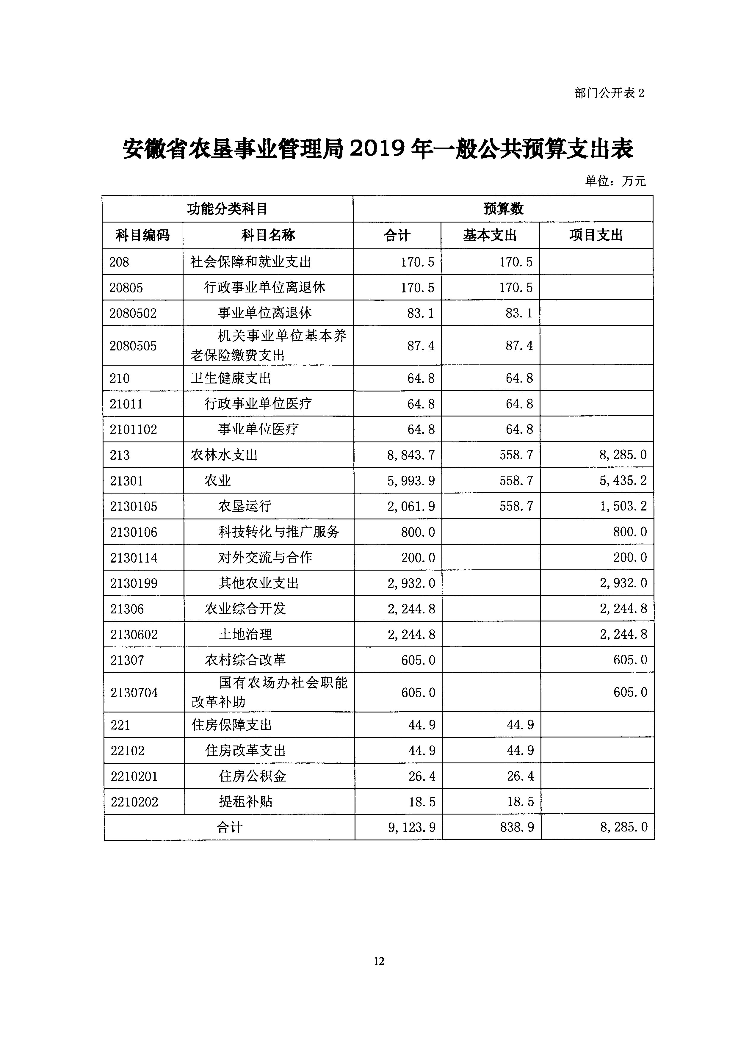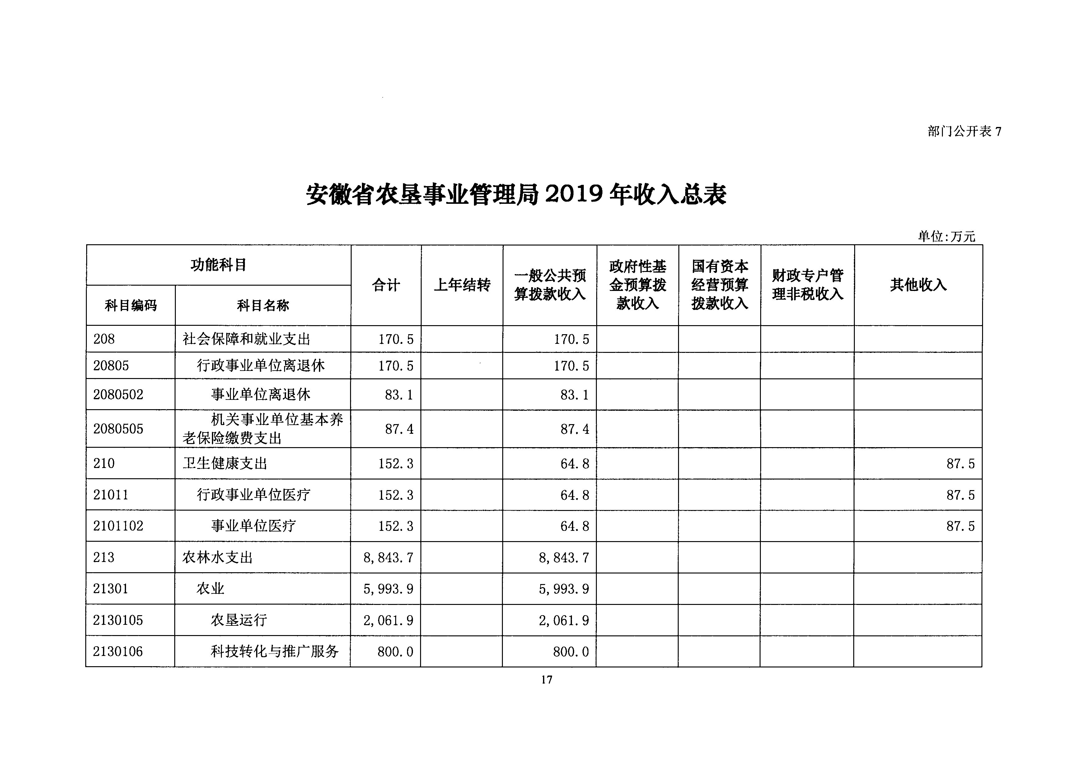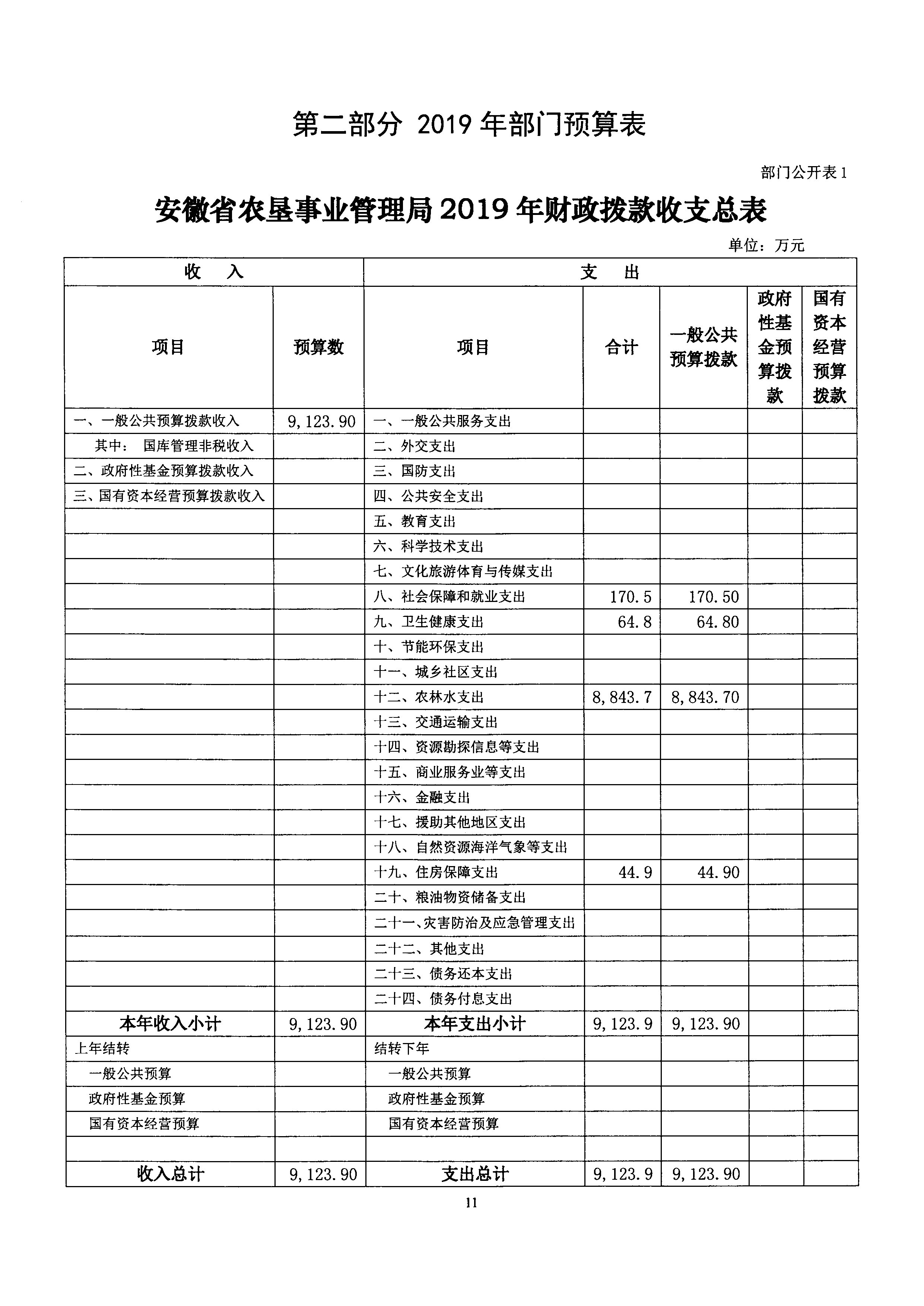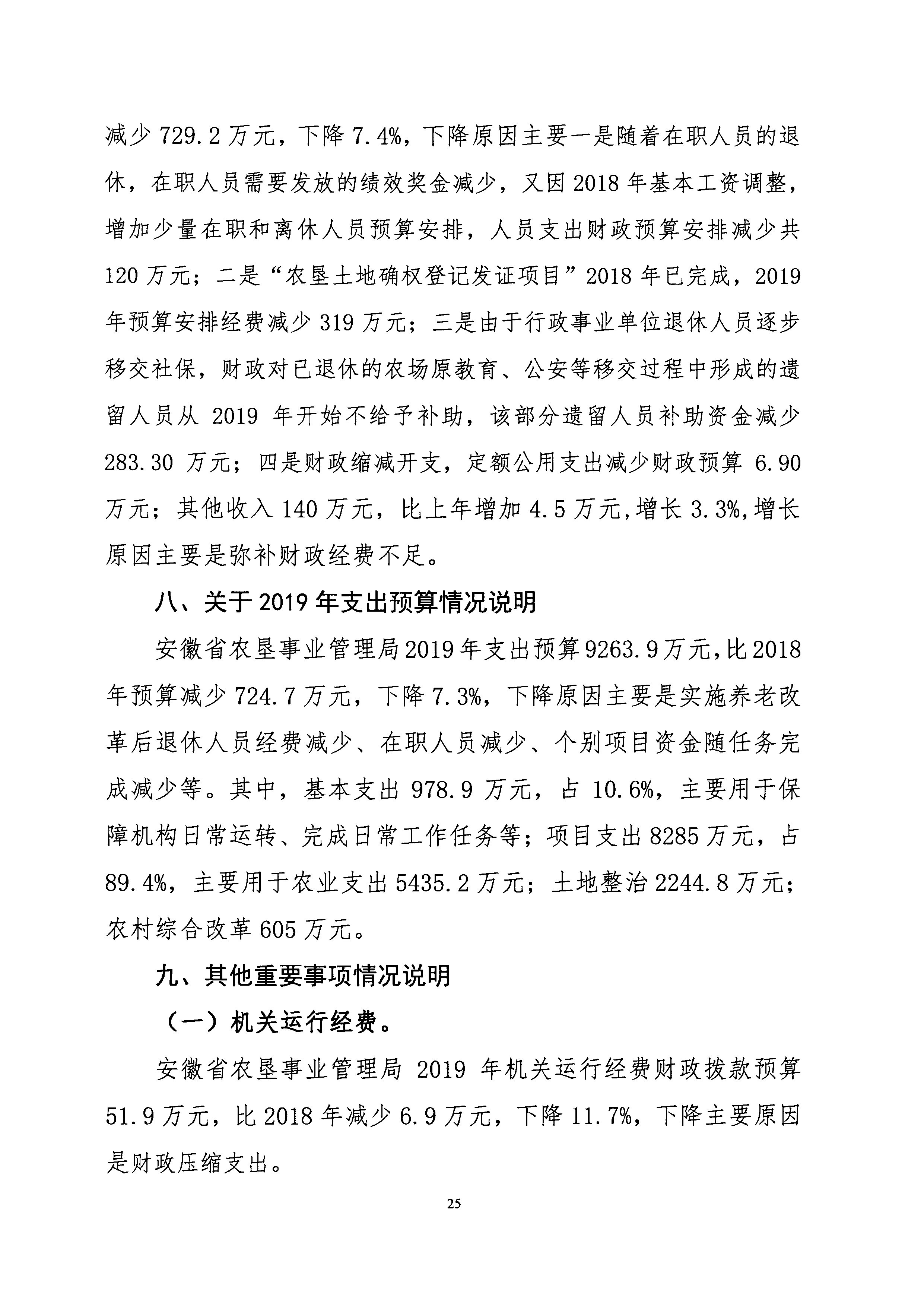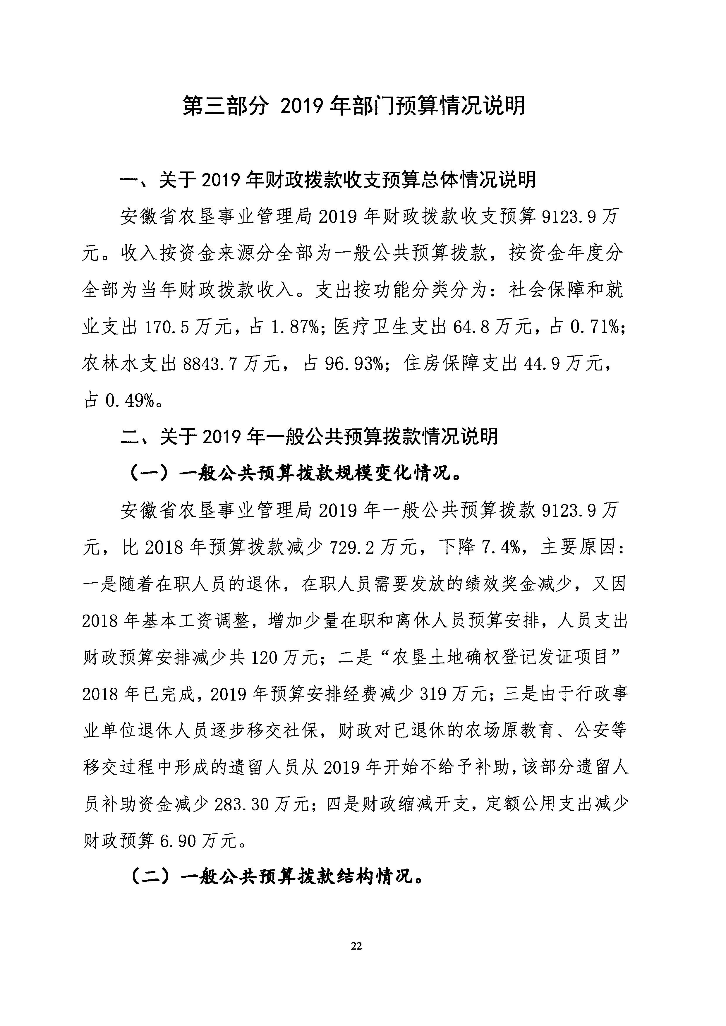 安徽省农垦事业管理局2019年部门预算