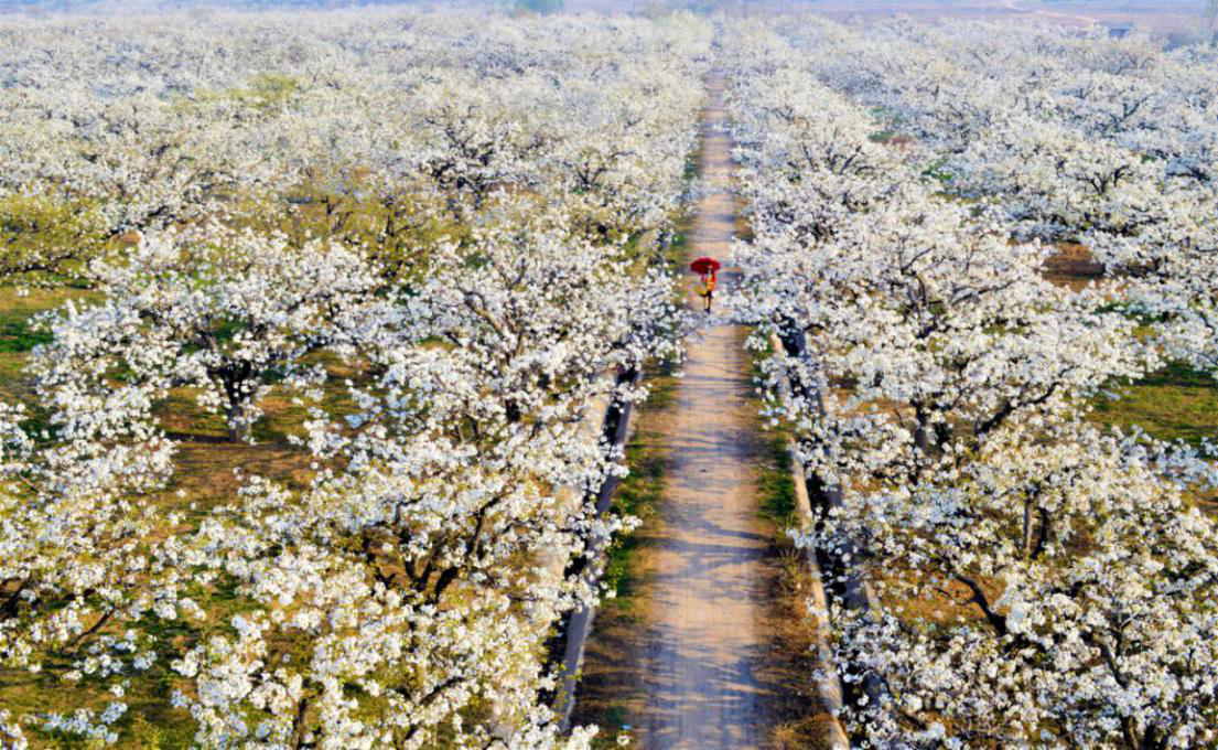 被誉为“中国酥梨之乡”的砀山果园场公司位于安徽最北部。清明时节,黄河故道两岸的果园场犹如茫茫雪海,洁白涌动。每逢梨花绽放时,万千花朵,篷盖着交错的道路,张开双臂,拥抱四方游客。