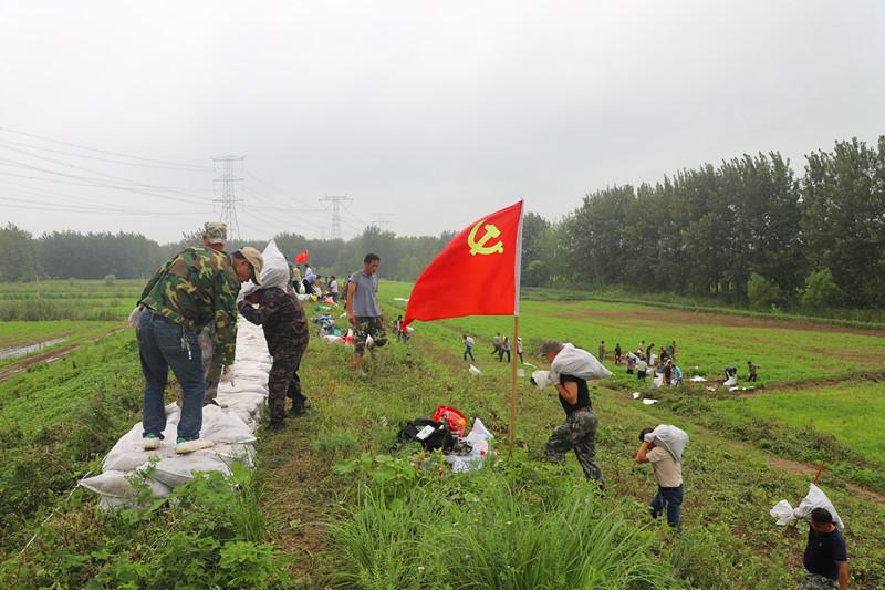 “大家休息一会吧,喝点水。”在一线指挥抗洪抢险战斗的潘村湖农场公司总经理安继凤向大家招呼道。“每人再扛10袋,干完再休息。”共产党员、潘村湖农服副经理阚广平也是一名退伍军人,在他的号召下,大家没有马上休息,而是加快了取土装袋、扛包上堤和卸包码放的速度。“一个冲锋下来,子堤又延长了几米。”阚广平擦了一把脸上的汗水,高兴地笑了。