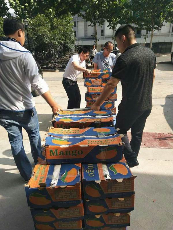今年海南农垦水果大丰收,但近期销售难、卖价低、果农愁,尤其是广坝农场公司芒果滞销严重。海垦集团发来求助信息,安徽农垦集团高度重视,总经理刘超亲自安排协调,由皖垦农产品超市牵头助销,制定工作方案,广泛动员集团总部及在肥所属企业,联系“五星”等水果经销商,仅一周时间就销售“爱心芒果”9.2万斤,倾情支持和帮助广坝果农尤其是贫困职工渡过难关,充分诠释了“农垦一家亲”的大爱情怀。
