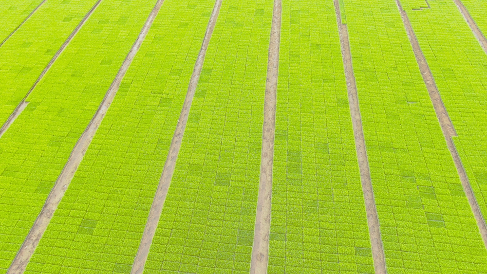 时雨及芒种,四野皆插秧。今年农垦集团夏种与以往不同的是,机械化插(抛)秧前的育秧工作提上重要日程。在华阳河农场和淮南农场育秧现场,一行行绿油油的秧苗生机盎然,构成一幅美丽画卷。