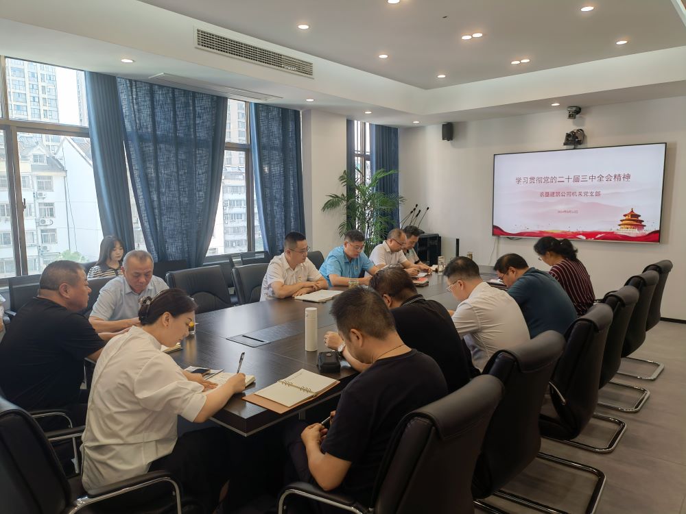 8月12日上午,农垦建筑公司召开机关党支部党员集体学习(扩大)会议,集中学习《中国共产党第二十届中央委员会第三次全体会议公报》及习近平总书记《关于<中共中央关于进一步全面深化改革、推进中国式现代化的决定>的说明》。机关支部全体党员、各部室中层及以上管理人员参加会议。
