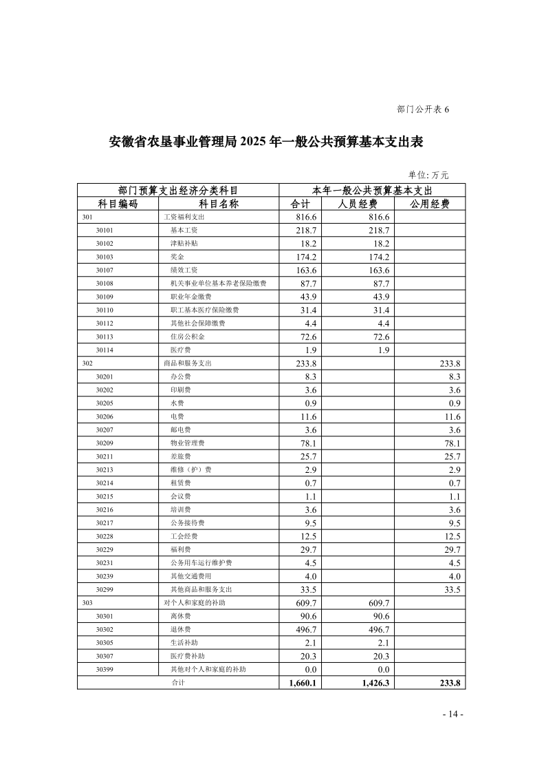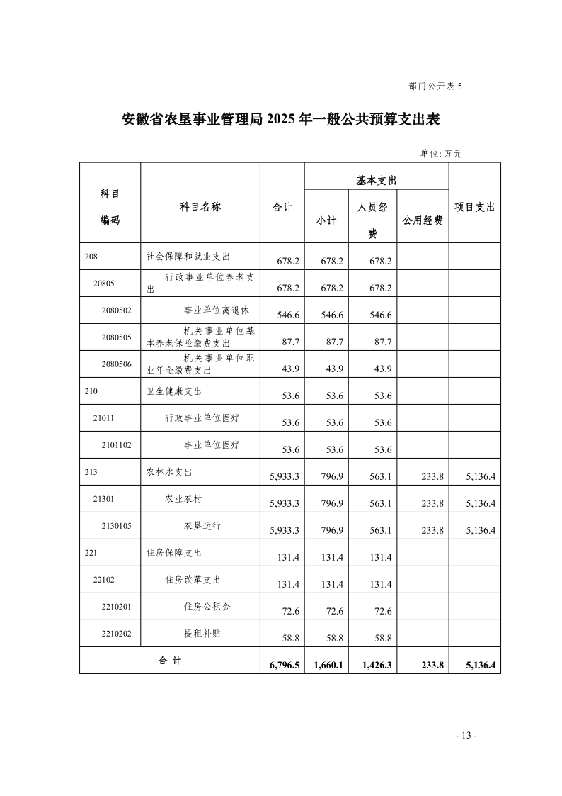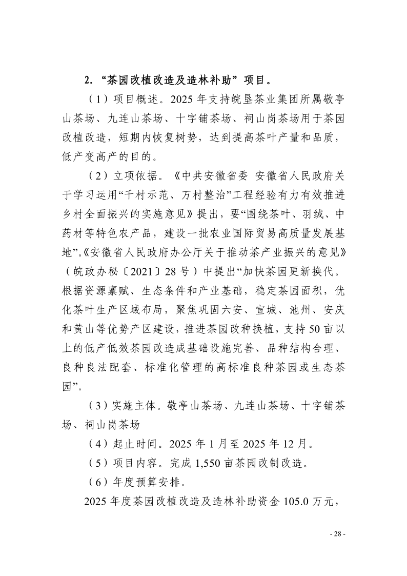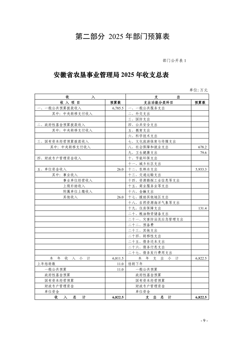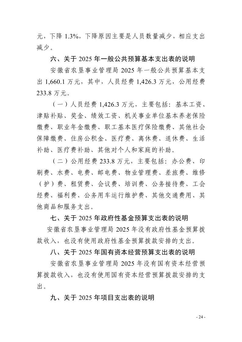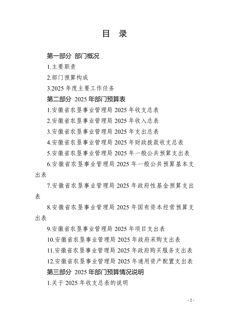 安徽省农垦事业管理局2025年度项目支出绩效目标