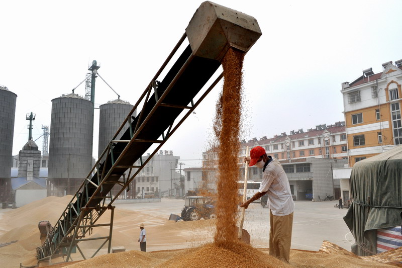 作为全省最大的小麦原良种生产加工基地,安徽农垦潘村湖农场大型种子烘干线在麦收期间全部投入使用,通过精心加工,以确保收获后的小麦种子粮达到安全收储标准。图为农场职工在晾晒小麦种子粮。(2013年7月9日农民日报08版,杨登宏)