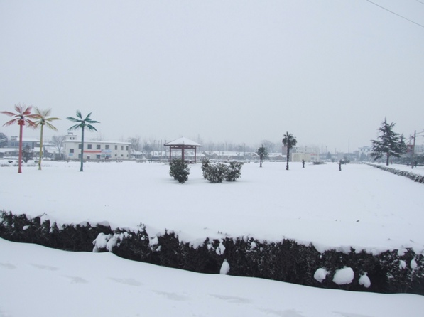 长空雪飞飘,改尽江山旧。伴着幽幽低语的北风,雪花如同绽放的礼花,灵动飞扬,情深款款,轻盈洒脱,姗姗飘落龙亢农场,全场上下惟余莽莽,雪浪银涛,银装素裹,玉树琼枝遍布全场,真可谓是白鹇错舞,银山素壑。倾城的雪给静谧的龙亢农场笼上一片银白的梦翼,增添了冬的情致。