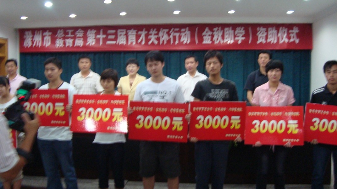 8月26日上午,滁州市总工会、教育局在滁州举行资助仪式。白米山农场有关负责人及部分被资助的学生和家长应邀参加了资助仪式。