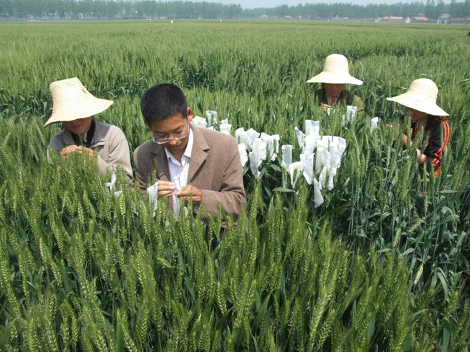 近年来,龙亢农场利用人才和科技优势,实施良种带动工程,积极开展育种、示范与推广工作,推动现代农业科技创新。“十五”以来,全场累计向社会推广麦、稻、豆新品种15个。该场现已开展3个麦豆品种航天选育工作,收集小麦品种资源650个,育种面积近50亩,已有2个麦稻品种进入产业化开发阶段,8个小麦育成品系进入省级小区试验。图为:农业科技人员正在做小麦杂交。