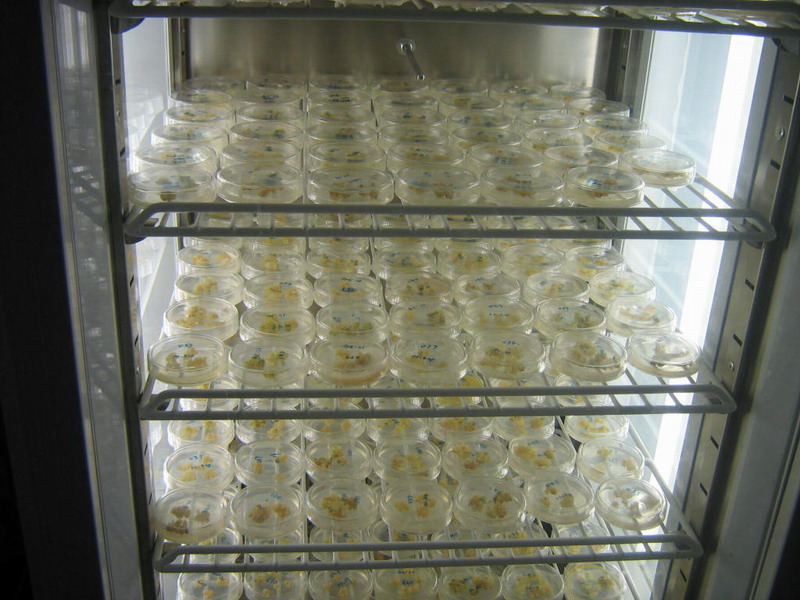 水稻花培技术是利用杂种F1、F2代的花粉或花药离体培养诱导出花粉植株再进行染色体加倍成苗。利用水稻花培技术使水稻杂交后代产生双单倍体,经人工或自然加倍后,其杂合基因能够快速纯合,大大缩短育种年限,是一种重要的水稻育种技术。农场领导对这项技术非常重视,投资30多万元建成生化实验室,并选派专业技术人员到科研院所进修三个多月学习水稻花培技术。技术人员从今年8月16日开始,陆续转移水稻杂交材料花药4万余板,成功育出2400余块愈伤组织,经分化培养和生根培养,至11月中旬成功育出首批绿苗100余株,这批绿苗长势健壮,不久将运往海南加代繁殖。