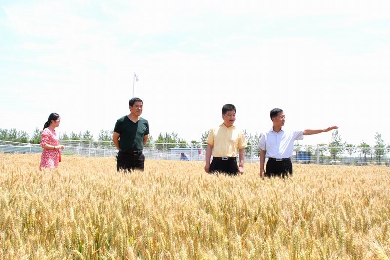 5月25日,安徽农垦集团副总经理陈仁虎率经合部、人力资源部同志一行,在龙亢农场督导午收夏种工作,场领导缪向阳、杨俊生随行介绍情况。