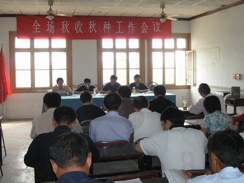 今年秋收、秋种及秋季产品上缴工作即将全面展开,为切实抓好全场“三秋”工作,特别是开展好小麦高产攻关活动,潘村湖农场于9月26日召开了由各分场管理人员、生产组长、职工代表和种子公司、粮油公司等部分涉农工商单位行政主管及机关各科室负责同志参加的秋收秋种工作会议,就当前农业工作和实施“万亩千斤小麦高产攻关”活动进行了部署。