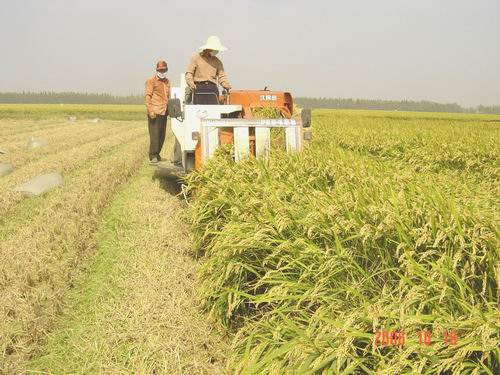 大圹圩农场1.7万亩优质水稻经过全场职工的精心管理,战胜了长期低温阴雨和病虫害大发生的危害,目前已是丰收在望。10月15日开始试收。根据田间测产和试收情况,预计亩产在600公斤左右。(图为田间试收场景)