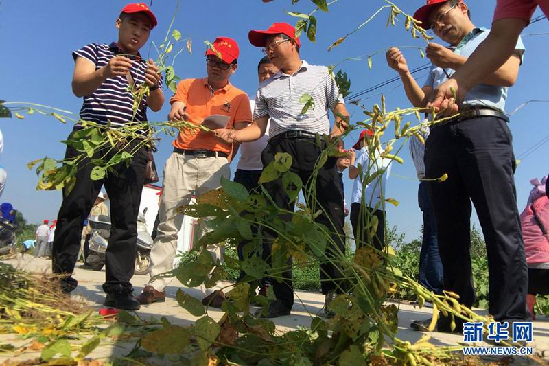 通过现场调研和实际亩产测定,专家们认为,这些优质大豆品种在南方具有较高的推广价值。(刘兵生 李龙 摄)
