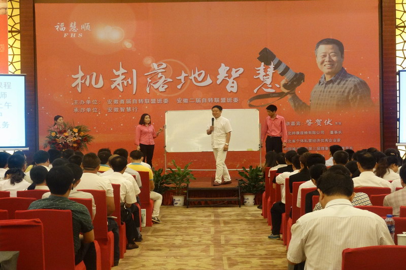 7月27日,黄山大厦KK快餐公司成功举办了第二届《企业自转智慧系统》落地碰撞会。来自安徽、湖南、湖北等省14家餐饮、制造企业的150多名代表到会。