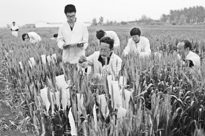 近年来,安徽农垦大圹圩农场积极与安徽、江苏多家科研单位合作,着力培育优质小麦、水稻新品种。目前,已有1个小麦品种、1个水稻品种通过审定并大面积推广。图为农场科研人员在对小麦进行杂交授粉。(农民日报2017年5月23日08版,李炳旺、刘延陈摄)