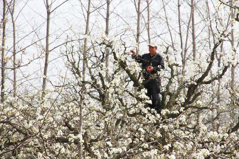 连日来,砀山果园场职工抓住最佳时机进行授粉,梨园里一派繁忙景象。据该场果树专家介绍,梨花自花不孕,只有在盛花期进行人工授粉,才能保证坐果率和优果率,场里上月底进行了动员部署,制定工作方案,做好管理服务,指导职工授粉,预计全场梨花授粉工作6日即可结束,保障了“翡翠牌”酥梨名果高产增收。(魏晓清等)
