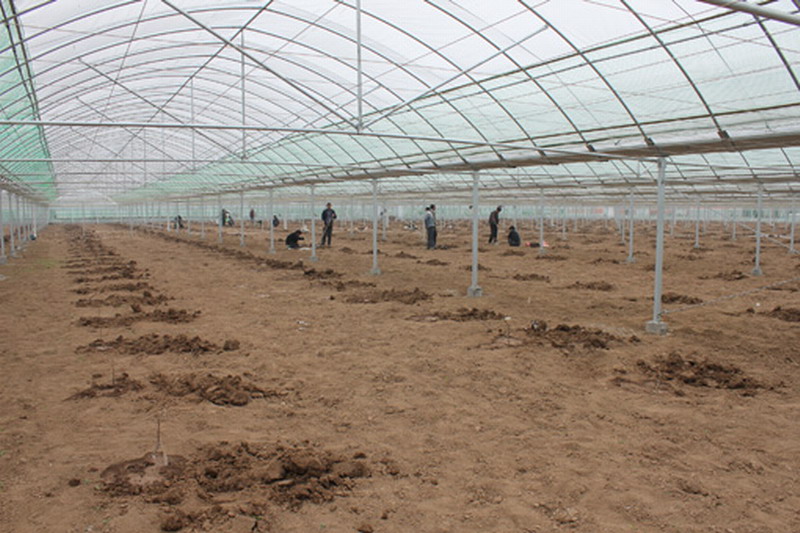该农场把发展高效农业作为强场富民的主要载体,逐年稳步推进。经过市场调研和实地考察,去年11月开始投资建设连栋葡萄生产大棚。目前第一期连栋大棚基础设施已安装完成,农场正在组织人员栽种优质葡萄苗,并在周边地块种植了25亩地膜优质马铃薯,充分发挥了土地资源利用效益。(曹秀芝 夏善生)