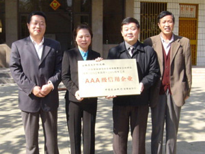 经安徽融诚信息咨询有限责任公司评定,中国农业 银行 安徽分行授予大圹圩农场二00三年七月~~二00四年 六月 AAA级信用企业荣誉称号,今年本市由2A荣升为3A的 企 业仅有两家。获此殊荣,极大地增强了企业的知名 度和 信誉度。