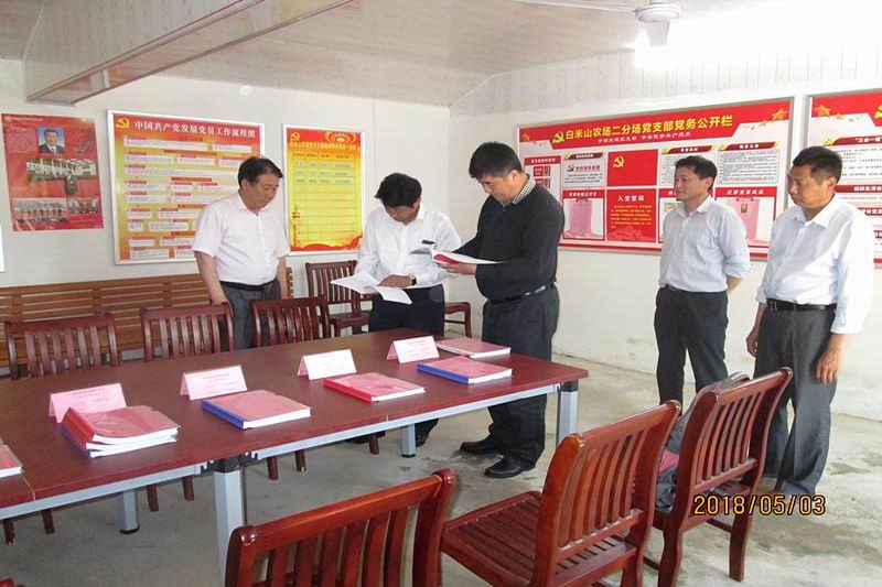 5月3-4日,省国资委党委基层党组织标准化建设第三验收组组长刘宪辉一行,对农垦集团党组织标准化建设达标情况进行了考核验收。集团党委副书记王良贵及党群工作部、基层部分党组织负责人参加汇报会。
