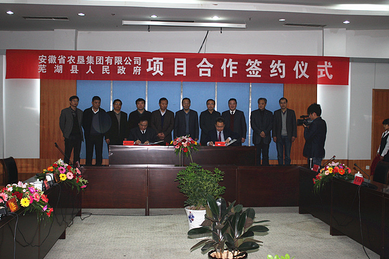 11月18日,安徽农垦集团与芜湖县人民政府举行项目合作签约仪式,合作内容包括省农垦九连山茶场部分土地整体规划开发、苗木大市场、商住用地开发等项目建设。仪式上,省农垦集团总经理李卓民和芜湖县委书记何友旺先后致辞,简要介绍了合作项目前期工作进展情况,展望了垦地合作前景,对签约项目建设提出了具体要求。省农垦集团副总经理程军和芜湖县长黄维群分别代表各方在合作协议上签字。