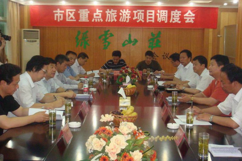 6月28日下午,宣城市区重点旅游项目调度会在农垦敬亭山茶场召开。宣城市政协主席孙铭和、副市长钱沙泉、市经开区管委会主任张黎勇、皖南垦区开发指挥部副指挥长凌军以及市委宣传部、市规划局、宣州区和农垦通和房地产宣城公司、敬亭山茶场负责同志参加了会议。会议强调,敬亭湖宾馆等市政府重点旅游项目受到了垦地双方的高度重视,取得了阶段性成果,双方应本着互利共赢、共同发展的原则,坚持重点项目重点抓,加快协调解决相关问题,加快工程建设进度,科学调度,上下协调,好中求快,共同推动垦地合作开发重点旅游项目建设进程。