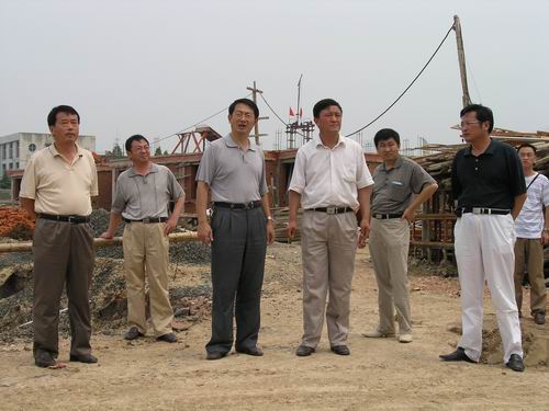 省农垦集团公司副总经理刘超在集团公司工贸处负责同志陪同下于7月7日在潘村湖农场检查指导工作。刘副总在详细了解了农场防汛排涝和灾后生产自救工作情况后,向奋战在抗灾一线的农场干部职工表示亲切慰问,对场领导一班人在大灾面前表现出不畏困难的精神面貌和积极组织全场职工全力以赴开展生产自救的工作部署给予了高度赞扬。刘副总勉励潘村湖农场广大干部职工在场领导的坚强领导下,发扬艰苦奋斗、勇于开拓的光荣传统,迎难而上,扎实工作,创造性地开展好生产自救工作,力争将灾害造成的损失降到最低程度。在场领导的陪同下,刘总一行还来到正在建设中的移民迁建工地,考察了工程建设情况并听取了场领导相关工作汇报。集团公司工贸处负责同志分别就农场移民迁建工程有关工作提出了意见和建议。刘超副总经理要求场领导一班人在着力抓好当前灾后生产自救工作的同时,按照集团公司有关会议和文件精神抓紧移民迁建工程建设工作,加大工作力度,采取有力措施,将移民迁建这一惠及行蓄洪区人民根本利益的德政工程作为一项政治任务和农场的“一号工程”落实好。图为刘超副总经理(左三)在移民迁建工地考察工程建设情况的情景。(杨登宏摄)