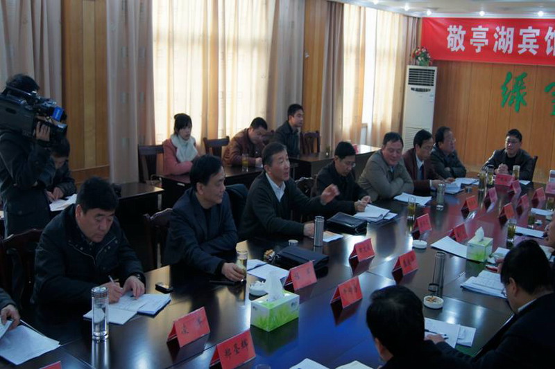 为扩大垦地合作成果,加快项目建设进度,3月14日下午,安徽农垦集团与宣城市人民政府在敬亭山茶场绿雪山庄联合召开了敬亭湖宾馆项目建设推进会。省农垦集团董事长田文俊、宣城市市长虞爱华出席会议。省农垦集团副总经理程军、陈仁虎以及省农垦皖南开发指挥部负责同志,宣城市政府秘书长牛传勇以及市直相关部门、宣州区政府主要负责人参加了会议。