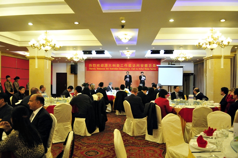交流会上,李卓民总经理致欢迎辞,并向客人介绍了安徽农垦基本情况及“走出去”发展战略,随后播放了农垦宣传片并在合肥黄山大厦宴请了澳方访华代表团一行。约翰·兰特里团长致答谢辞,对安徽农垦的热情招待表示感谢。双方表示今后要加强在农业投资领域的交流合作。(杨涛)