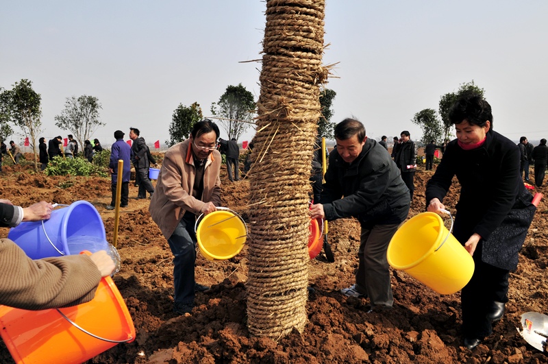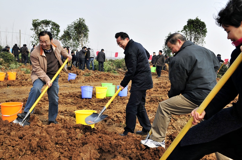 草长莺飞,春回大地。3月12日植树节这天,安徽农垦集团在位于合肥市蜀山区南岗镇的“安徽皖垦生物科技高效农业示范园”内举行了大规模植树活动。活动由王占廷副总经理主持,李卓民总经理致辞,田文俊董事长宣布植树活动正式开始。省农垦集团领导、合肥市副市长江洪、省林业厅副巡视员唐丽影以及省农委、蜀山区、皖垦种业、皖垦茶业、黄山大厦、通和房产有关领导和集团机关全体员工100余人参加了义务植树造林活动。