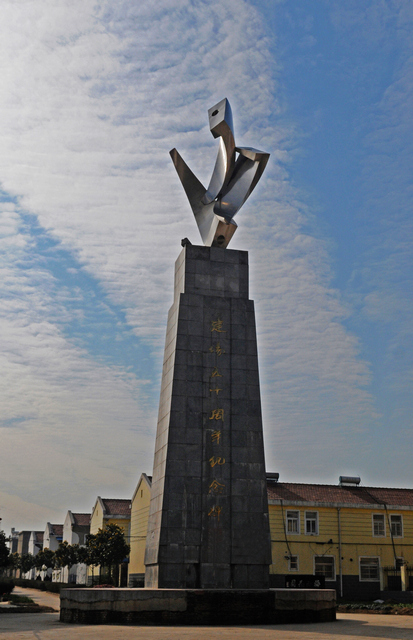 农场场部小城镇座落地为梅山。走进梅山新城,南北和东西纵横两条宽阔平坦的主干道交汇处,耸立着场部小城镇地标性雕塑“创业犁铧”,它是方邱湖人60余载奋斗历程的纪念,更是他们不断开拓未来的信念。三片犁铧那纯银般的光芒,恰似燃烧不灭的农垦精神之火,让每一位从此路过的人驻足景仰。