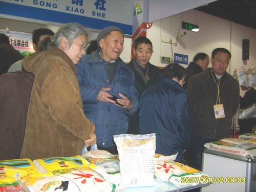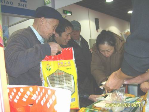 元旦期间,在集团公司的组织下,大圹圩农场精心组织、积极参加安徽省第七届名优农产品、绿色食品(上海)交易会。农场“倮倮”米业加工选送的“一把香”糯米、软玉粳米、营养米、香糯米、特制富硒米、水磨糯米粉等优质农产品深受上海市民的青睐。据农场参加这次交易活动的施广庆副场长介绍:几天里,大圹圩农场展台前来选购的市民络绎不绝,有一位上海市民徐先生听了大圹圩农场产品宣传后,购买了一袋软玉粳米和营养米,当晚就打来电话,称赞农场大米果真名不虚传。第二天一大早,徐先生就带着爱人赶来,一次买了15袋大米,说留着春节送给亲朋好友品尝。 |