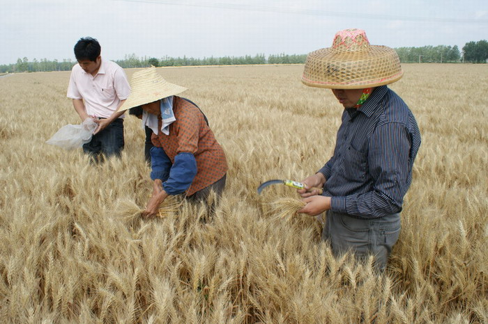 抢收前夕,农场小麦试验田里,育种技术员郑光学组织人力精心收割、脱粒、晾晒小麦育种高代材料。大圹圩农场作为皖垦种业麦稻种子生产加工基地,近几年先后投入数百万元,加强育种基地软硬件建设,聘请省内外育种专家担任技术顾问,努力提高自主创新能力,力争选育出优质多抗、适应市场需求、具有自主知识产权的新品种。经过4年多的精心选育,目前选育种工作初见成效,其中,“皖垦076号”小麦新品种已通过省专家组评审,1个小麦新品系进入了国家预试和省区试,并选育出高代小麦育种材料5个,收集种植小麦亲本300多个,组配小麦杂交组合220多个,筛选保存的小麦高代材料现有3000余份。