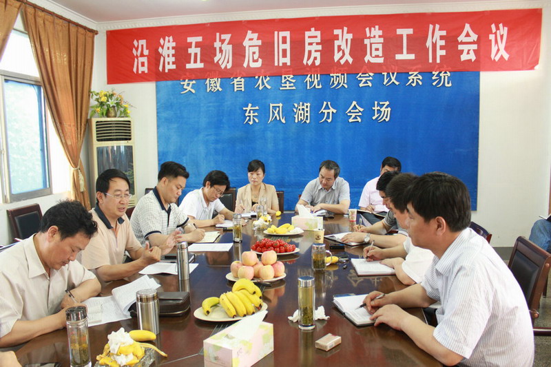 5月31日,安徽农垦集团副总经理刘超在东风湖农场主持召开沿淮五场危旧房改造工作会议。寿西湖、正阳关、淮南、水家湖、东风湖等5个农场和集团公司相关部门、现代农业工程设计院负责人参加了会议。