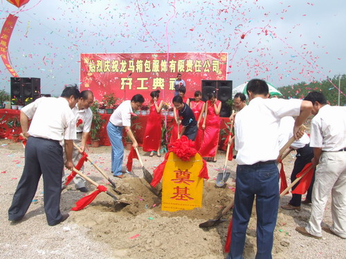 ![]() 8月21日,龙亢农场创业园区彩旗飘扬,鞭炮齐鸣,锣鼓喧天,龙亢农场创业园首批入园企业——香港南华集团怀远龙马箱包服饰项目开工奠基典礼在这里隆重举行,当最后一锨黄土覆盖住奠基石碑,标志着该项目进入了实质性建设阶段。