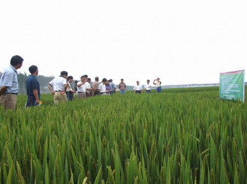 检查组一行首先深入龙亢农场粮食丰产工程超高产田、核心示范区、万亩水稻示范区、旱直播生产示范田,详细查看了水稻长势情况及试验开展情况,听取了粮食丰产科技工程项目执行情况汇报。