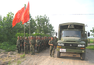 7月30日18时左右,从阜南县中岗镇淮堤抢险临时驻地转战焦岗湖防汛的武警安徽省总队近百名官兵赶赴我场,增援一分场防汛,并驻扎此地,作为抢险先头部队,以备第一时间突击抢险应急。这支队伍的到来,在一定程度上又增强了广大职工抗洪必胜的信心(图文:李玉振)。