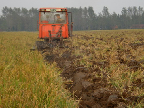 自2000年秋季以来,大圹圩农场一直采用旋耕播种。实践表明,旋耕在减少种植作业层次,适时抢墒播种,解决稻麦让茬矛盾,提高小麦单产等方面发挥了积极的作用。但长期旋耕造成了土地耕作层过浅,后期小麦易早衰,病虫草害加重等诸多弊端。为此,农场要求各农业单位从今年起每年安排三分之一的土地按标准质量进行翻耕,三年内保证辖区内所有每个地块都能轮翻一遍,同时做到秸杆全量还田,严禁焚烧。为了确保这项措施落到实处,农场决定从今年开始,每亩地每三年一次性提取30元费用作为土地翻耕基金,凡三年内按要求翻耕一次的农户,如数退还所提取的费用,否则所收费用将作为土地资源过度使用费,不再退还。通过宣传和解释,这项保护耕地措施,得到了绝大多数农业承包户的理解和支持。目前,这个场今年秋季已落实了翻耕计划6000余亩,各农业管理区稻茬田适墒翻耕和秸杆还田工作也在有序展开(见图)。