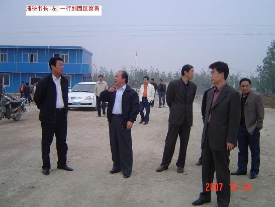 10月24日下午,蚌埠市副秘书长潘余礼带领蚌埠市发改委、市国土局和怀远县有关领导,深入龙亢农场调研该场创业园的发展情况,龙亢农场场长、怀远县产业集中区管理委员会主任杨俊宇、副场长李应河陪同调研。