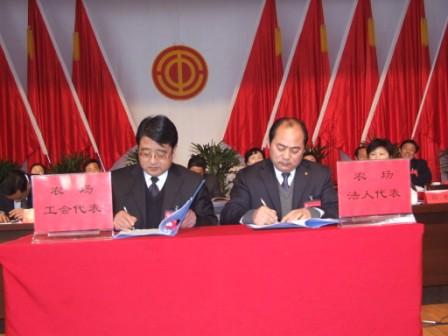 会上,龙亢农场法人代表、场长、党委书记杨俊宇与龙亢农场工会代表、工会主席、党委副书记张建民现场签订了《龙亢农场集体合同》。