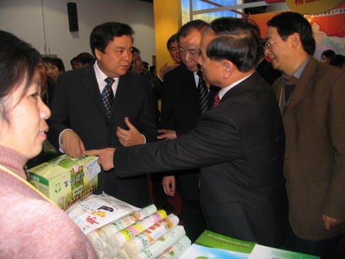 在辞旧迎新之际,安徽农垦组织新产品赴上海参加“安徽第八届名优农产品绿色食品交易会”。2007年12月31日,安徽省委常委、副省长赵树丛,省政协副主席秦德文等省领导在省农垦集团公司副总经理刘超同志的陪同下,兴致勃勃地参观了安徽农垦展厅,对展厅布置及产品档次给予了较高评价。