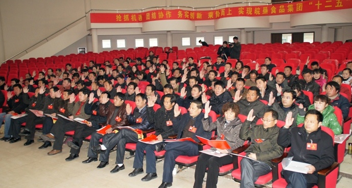 皖垦食品集团董事长、党委书记、总经理王国福向大会作了题为《团结奋进,坚持创新,主动融入,率先突破,为全面推进皖垦食品集团跨越发展而努力奋斗》的工作报告。报告认为,“十一五”期间,我场经济总量迅速提升,五年间累计实现粮食总产14893万公斤,其中种子5213万公斤,实现农业增加值18799万元,分别比“十五”期间增长23%、15%、77%;实现工业销售收入105083万元、增加值8383万元,分别比“十五”期间增长21%、9%;三产营业额173310万元、国内生产总值20305万元,分别增长199%、45%;完成固定资产投入26495万元,增长了13倍;累计创造统一经营利润3729万元,其中龙亢农场效益2000万元,比“十五”期间增长近3倍,职均年收入16000元,比十五期间增长6916元。超额完成了“十一五”规划确定的主要目标和任务。一是产业发展成就卓著。二是城镇建设跃上新起点。三是主动融入取得新突破。四是争取政策取得新成果。五是民生工程获得新业绩。六是企业管理得到加强。七是企业改革取得新成果。八是社会事业得到新发展。